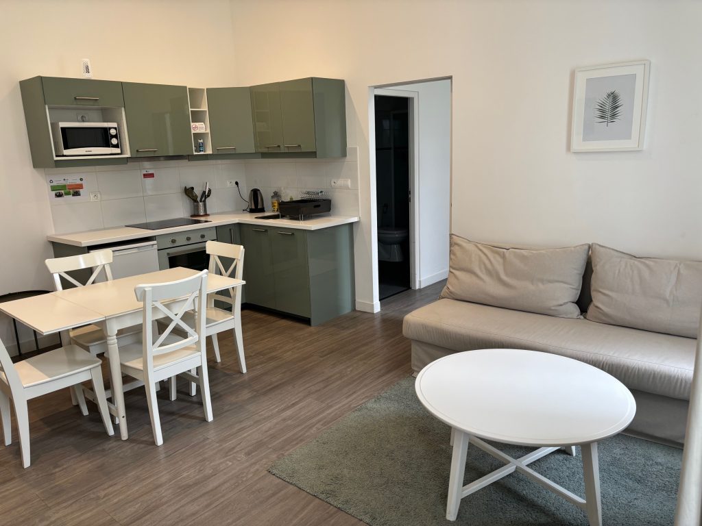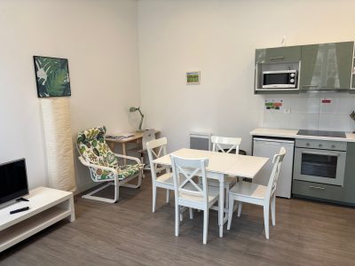 Situé au rez de chaussée, un T2 côté jardin, avec une chambre, salle de bains, cuisine équipée et coin bureau. L’appartement peut héberger 2 à 4 personnes et est accessible aux personnes à mobilité réduite.